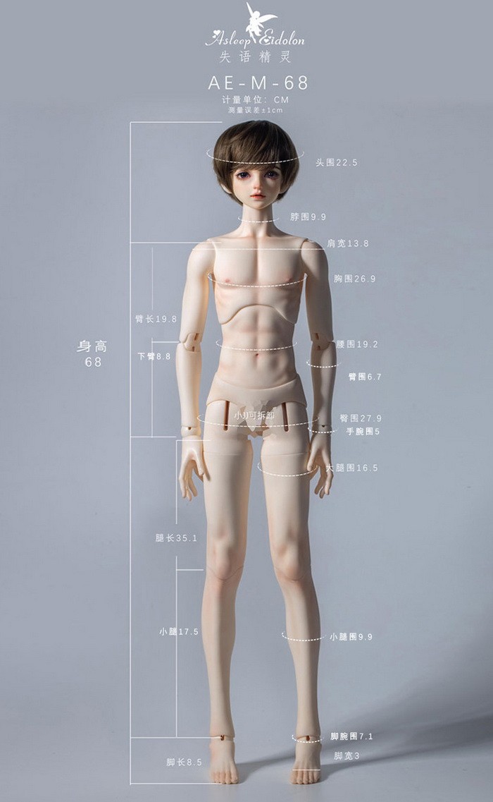 ![]() * Other hands type costs USD25/pair (+$10 if with blushing), you can use this USD1 page to add them. Measurements: -Height: 68cm (when with head) -Neck: 9.9cm -Shoulder Width: 13.8cm -Arm Length: 19.8cm -Chest: 26.9cm -Waist: 19.2cm -Hips: 27.9cm -Thighs: 16.5cm -Leg Length: 35.1cm -Foot Width: 3cm -Foot Length: 8.5cm
