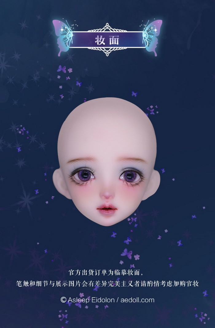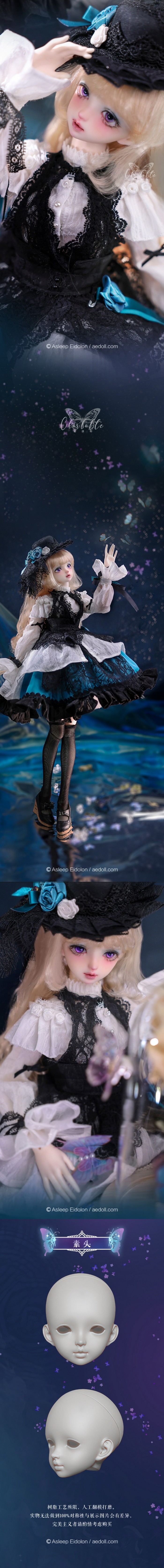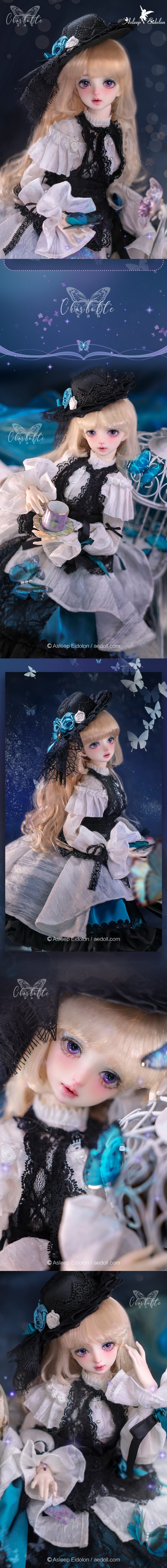 Charlotte, 59cm Asleep Eidolon Girl. ![]() Basic Price Includes: -Basic Doll -Eyes (random) -Birth Card -Packaging Measurements: -Height: 59cm -Head: 21.5cm -Eyes: 16mm -Neck: 8.3cm -Shoulder Width: 10.5cm -Arm Length: 16.3cm -Chest: 23cm -Waist: 18cm -Hips: 24.3cm -Thighs: 15.3cm -Leg Length: 30.5cm -Foot Width: 2.8cm -Foot Length: 7.1cm