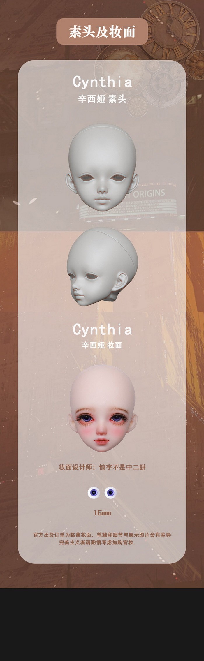 Cynthia, 59cm Asleep Eidolon Girl. ![]() Basic Price Includes: -Basic Doll -Eyes (random) -Birth Card -Packaging Measurements: -Height: 59cm -Head: 21.5cm -Eyes: 16mm -Neck: 8.3cm -Shoulder Width: 10.5cm -Arm Length: 16.3cm -Chest: 23cm -Waist: 18cm -Hips: 24.3cm -Thighs: 15.3cm -Leg Length: 30.5cm -Foot Width: 2.8cm -Foot Length: 7.1cm