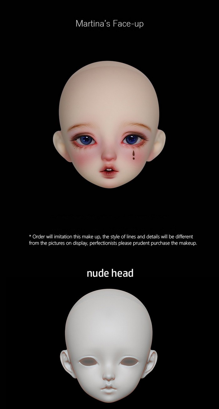 Martina, 41cm Asleep Eidolon Girl. ![]() Basic Price Includes: -Basic Doll -Eyes (random) -Birth Card -Packaging Measurements: -Eyes: 14mm -Height: 41cm -Head: 18cm -Neck: 6.3cm -Shoulder Width: 8.8cm -Arm Length: 11.9cm -Chest: large-17.5cm, small-16.8cm -Waist: 13.6cm -Hips: 20.5cm -Thighs: 12cm -Leg Length: 21.2cm -Foot Width: 2.2cm -Foot Length: 5.6cm