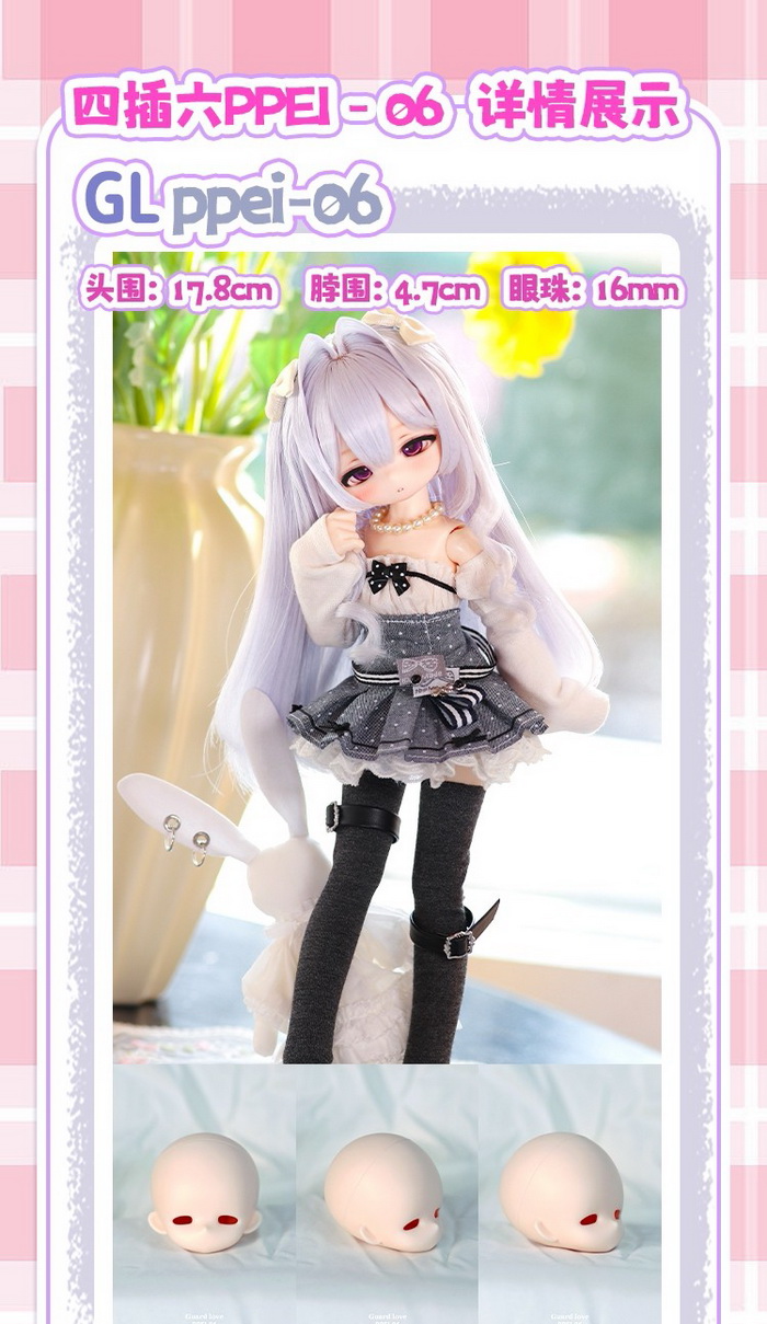 Guard Love New Dolls Promotion (2026.02.14 - 2026.03.15): 18% off.====================================================================== PPEI06, 31cm Guard Love Doll ![]() Basic Price Includes: *Basic Doll(1/4 head + 1/6 body) *Face-mask *Undergarment *Certificate card Measurements: -Eyes: 16mm -Height: with big feet-about 29cm; with small feet-about 28cm -Head: 17.8cm -Neck: 4.7cm -Shoulder Width:5.6cm -Chest: 11.5cm -Waist: 9.6cm -Hips: 14.4cm -Arm Length:7.8cm -Thigh Circumference: 7.5cm -Calf Circumference: bent-7cm; straight-6.3cm -Leg Length: 14.3cm -Foot Length: big-4.8cm; small-3.6cm -Foot Width: big-2cm; small-1.6cm