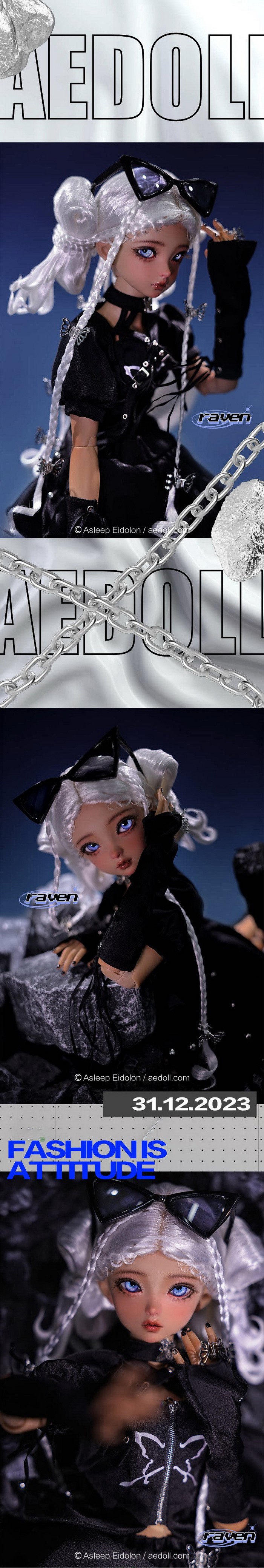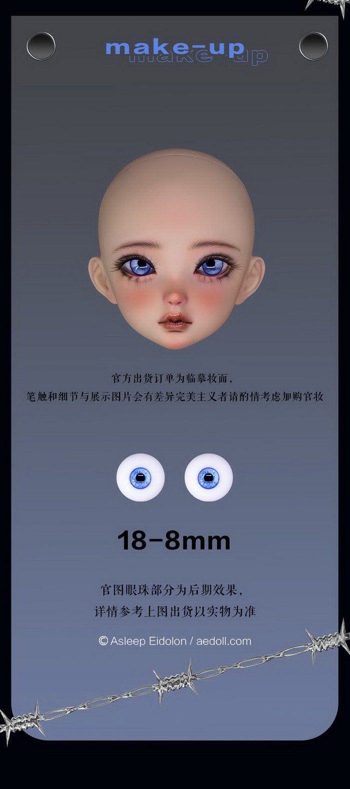 Raven, 59cm Asleep Eidolon Girl. ![]() Basic Price Includes: -Basic Doll -Eyes (random) -Birth Card -Packaging Measurements: -Height: 59cm -Head: 21.5cm -Eyes: 18mm -Neck: 8.3cm -Shoulder Width: 10.5cm -Arm Length: 16.3cm -Chest: 23cm -Waist: 18cm -Hips: 24.3cm -Thighs: 15.3cm -Leg Length: 30.5cm -Foot Width: 2.8cm -Foot Length: 7.1cm