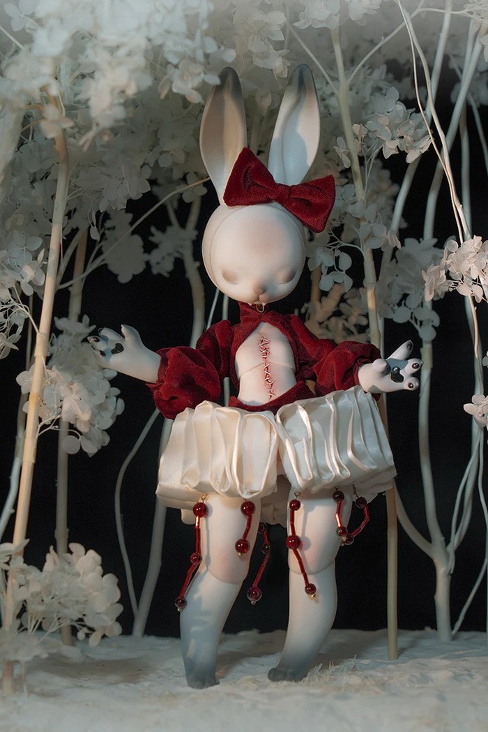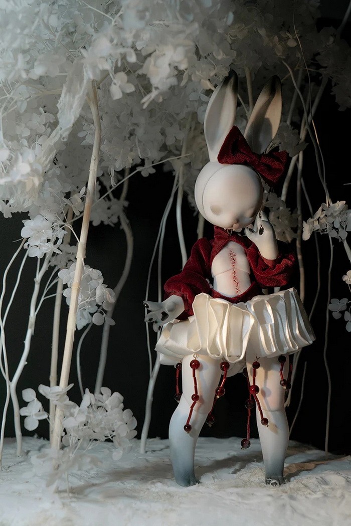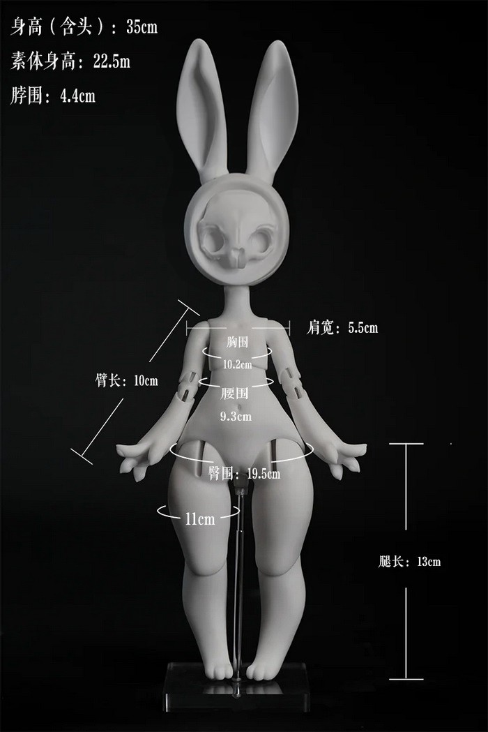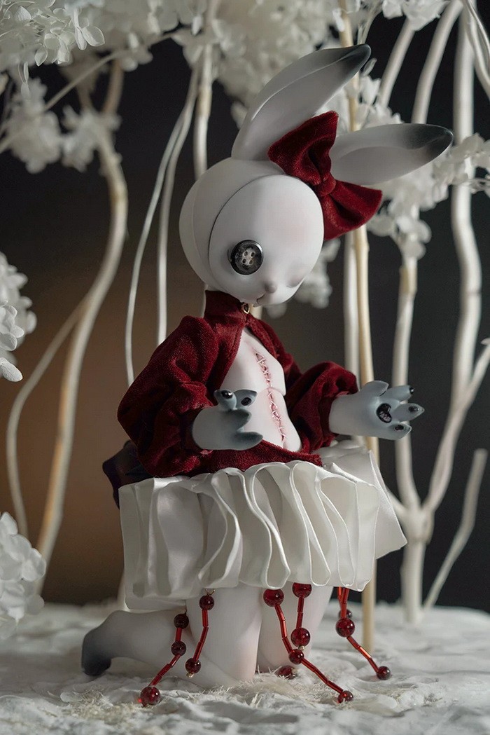Coralreef Doll Reopen Doll Promotion (now - 2026.02.28): 5% off.====================================================================== Red Rabbit, 35cm Coralreef limited Doll (discontinue after 2026.02.28). ![]() -Basic Doll (skull rabbit head + body) -Tail (rose) -Rabbit Mask -Birth Card -Packaging Fullset Price Includes: -Basic set -Eyes -Face up (makeup for ears & rabbit mask included) -Body Blush (makeup for tail included) -Clothes Notes: * The doll in promotion pictures is white skin. * In option 'Special Parts', A means transparent skull mask (nude), B means transparent close eyes mask (nude). * The price of 'human normal hands + human lower arms' is $25/pair ((old blue + $5, mangosteen + $10), you can use this USD1 page to add them. * The price of 'human feet + human calves' is $25/pair ((old blue + $5, mangosteen + $10), you can use this USD1 page to add them. Measurements: Eyes : 14mm Height: 35cm (with ears) Head size: 18.5cm neck circumference: 4.4cm shoulder width: 5.5cm arm length: 10cm chest: 10.2cm waist: 9.3cm hips: 19.5cm leg length: 13cm thigh circumference: 11cm