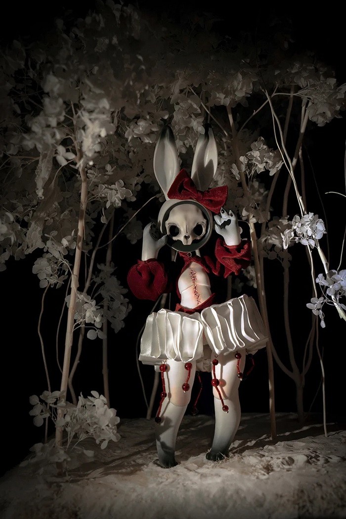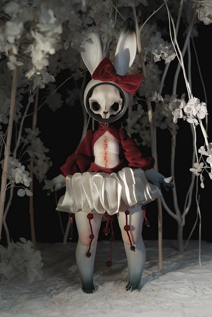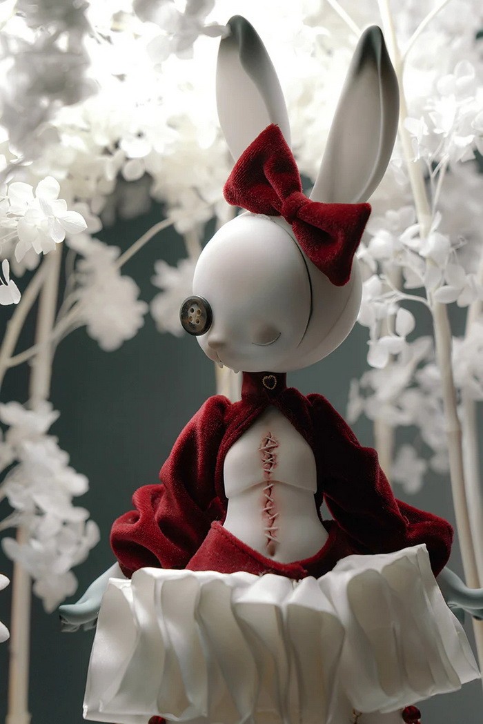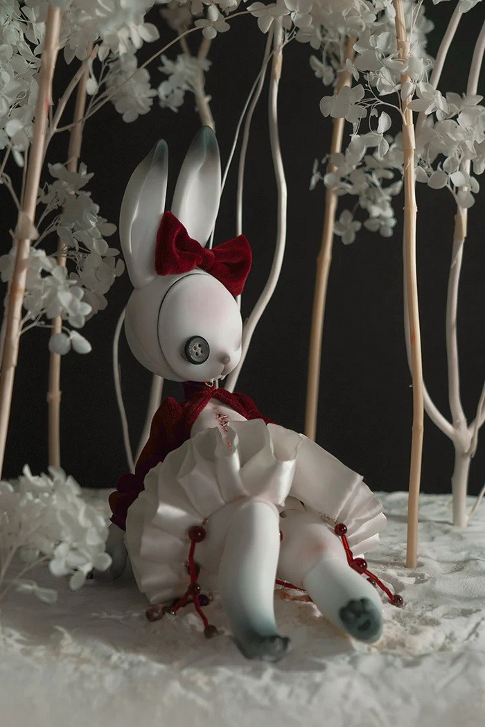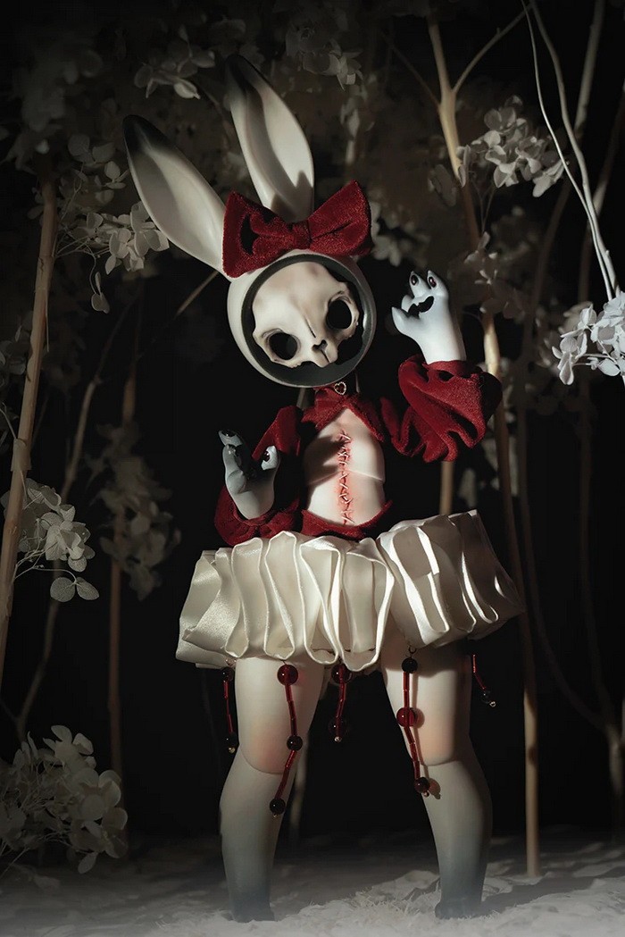 Coralreef Doll Reopen Doll Promotion (now - 2026.02.28): 5% off.====================================================================== Red Rabbit, 35cm Coralreef limited Doll (discontinue after 2026.02.28). ![]() -Basic Doll (skull rabbit head + body) -Tail (rose) -Rabbit Mask -Birth Card -Packaging Fullset Price Includes: -Basic set -Eyes -Face up (makeup for ears & rabbit mask included) -Body Blush (makeup for tail included) -Clothes Notes: * The doll in promotion pictures is white skin. * In option 'Special Parts', A means transparent skull mask (nude), B means transparent close eyes mask (nude). * The price of 'human normal hands + human lower arms' is $25/pair ((old blue + $5, mangosteen + $10), you can use this USD1 page to add them. * The price of 'human feet + human calves' is $25/pair ((old blue + $5, mangosteen + $10), you can use this USD1 page to add them. Measurements: Eyes : 14mm Height: 35cm (with ears) Head size: 18.5cm neck circumference: 4.4cm shoulder width: 5.5cm arm length: 10cm chest: 10.2cm waist: 9.3cm hips: 19.5cm leg length: 13cm thigh circumference: 11cm