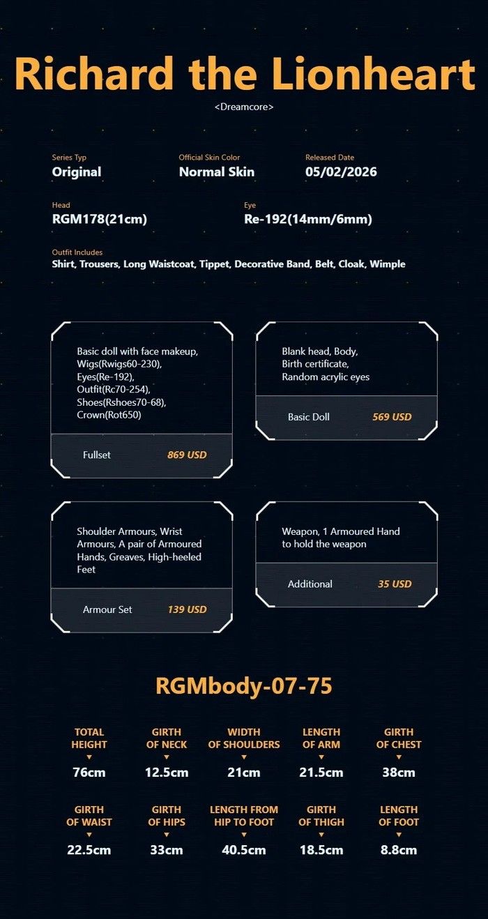 * 'Special Parts-B' means armour set (shoulder armours + wrist armours + a pair of armoured hands + greaves + heel feet).