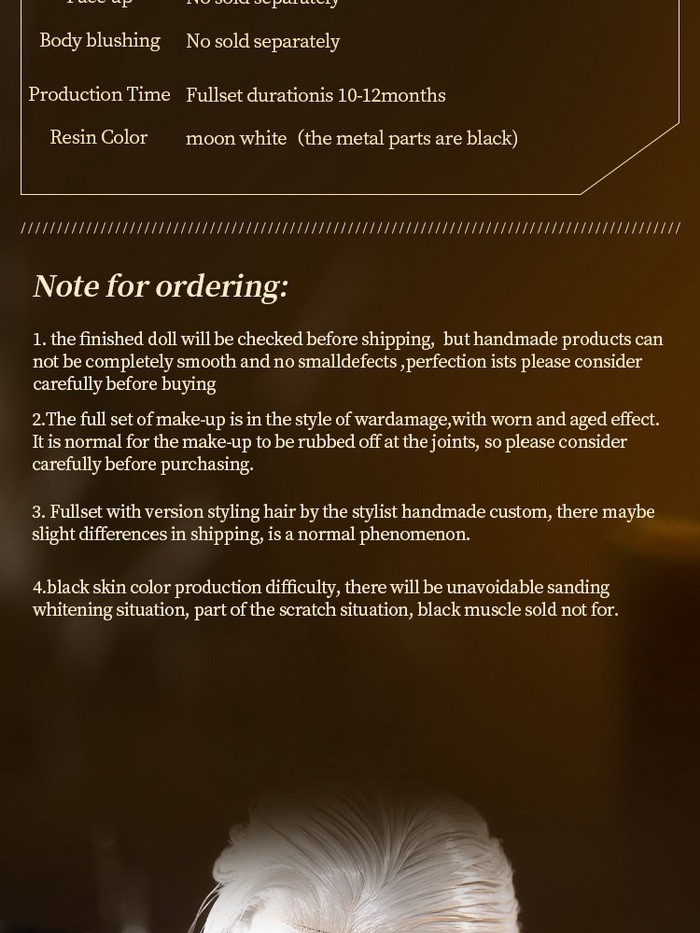 Fullset Includes: basic set, faceup, full doll makeup as in pictures, eyes, mechanical ver. wig, cloak.