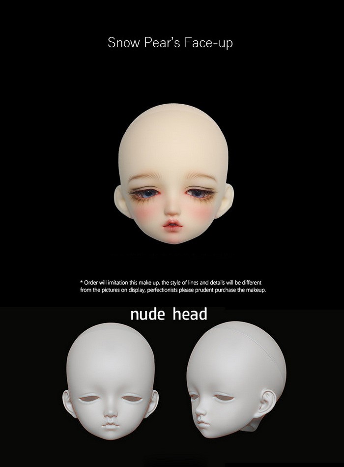 Snow Pear, 41cm Asleep Eidolon Girl. ![]() Basic Price Includes: -Basic Doll -Eyes (random) -Birth Card -Packaging Measurements: -Eyes: 14mm -Height: 41cm -Head: 18cm -Neck: 6.3cm -Shoulder Width: 8.8cm -Arm Length: 11.9cm -Chest: large-17.5cm, small-16.8cm -Waist: 13.6cm -Hips: 20.5cm -Thighs: 12cm -Leg Length: 21.2cm -Foot Width: 2.2cm -Foot Length: 5.6cm