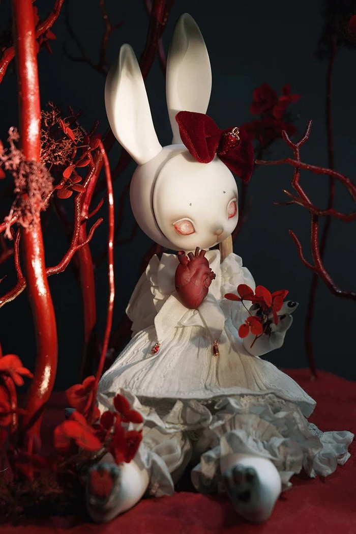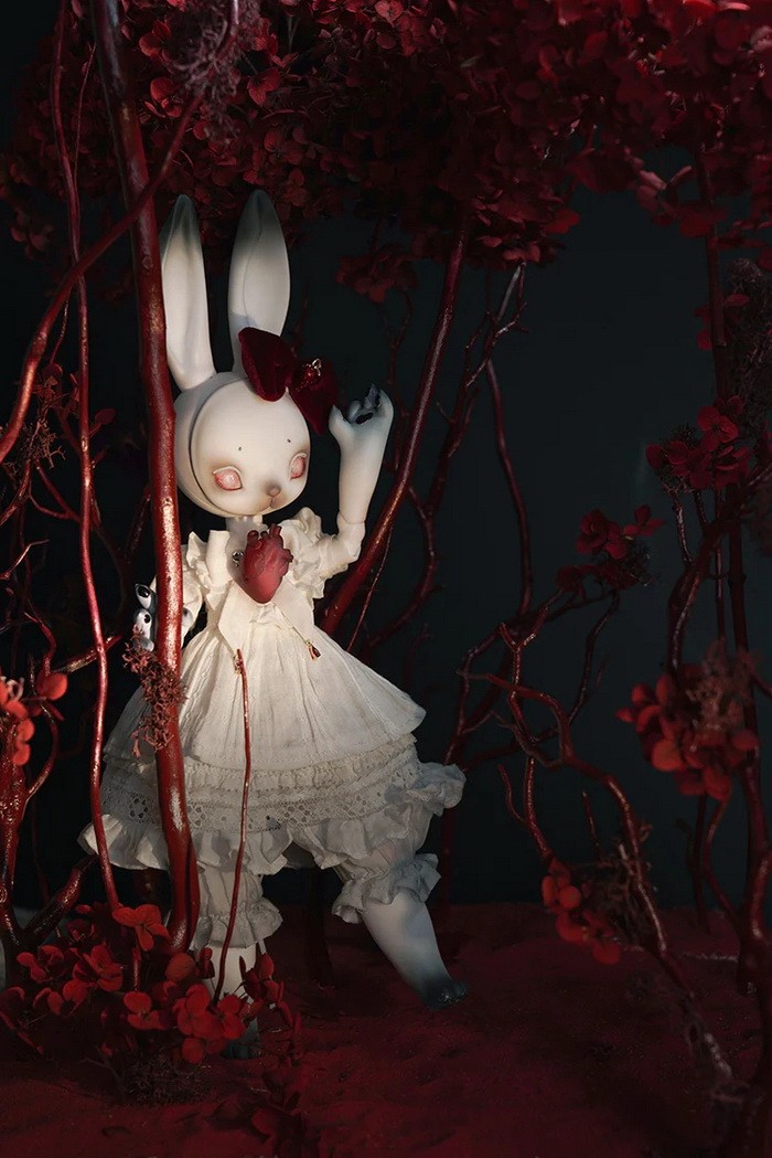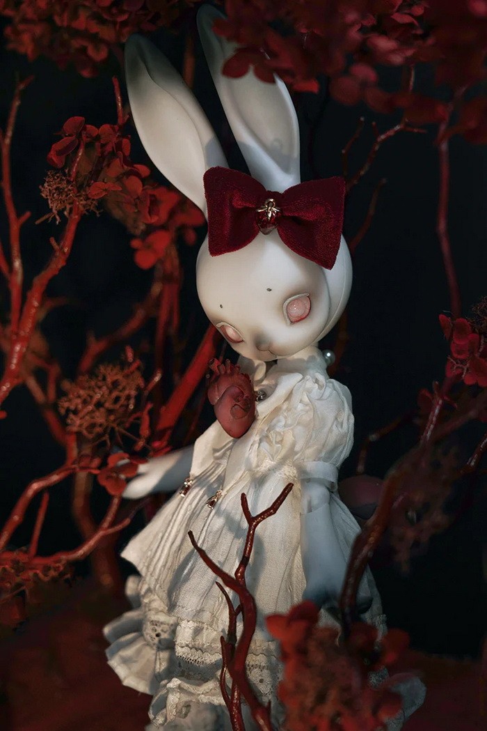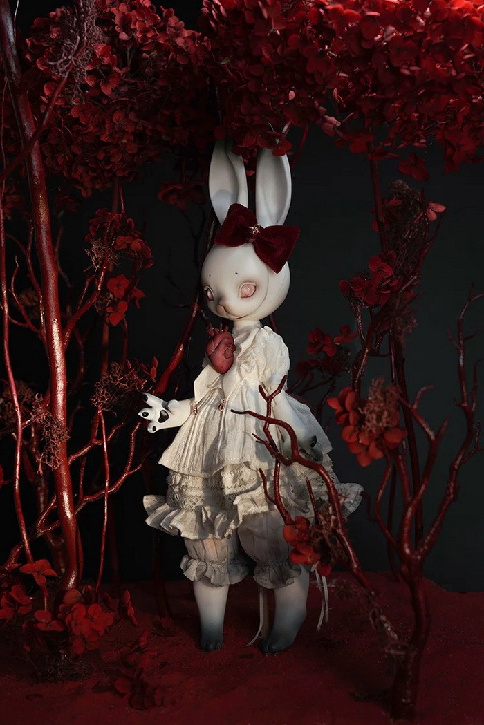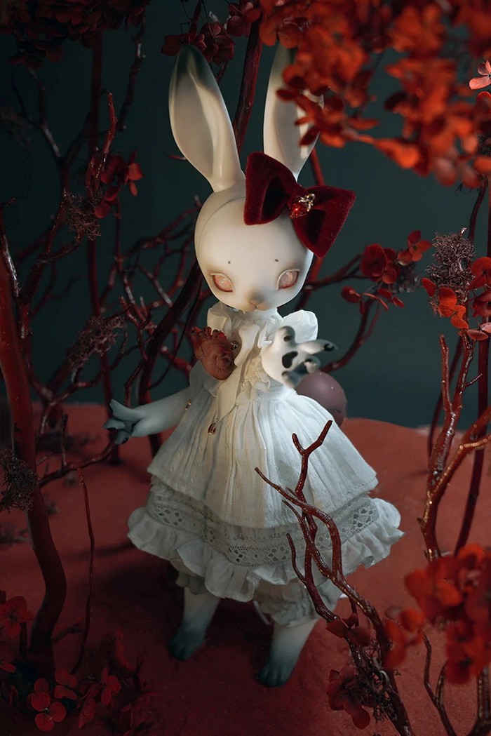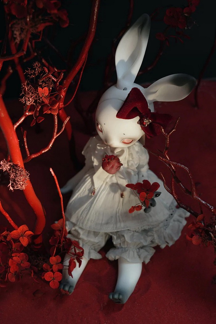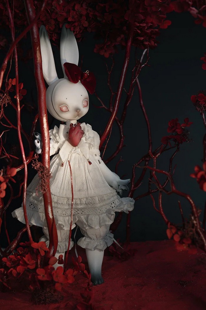 Coralreef Doll Reopen Doll Promotion (now - 2026.02.28): 5% off.====================================================================== White Rabbit, 35cm Coralreef limited Doll (discontinue after 2026.02.28). ![]() -Basic Doll (rabbit head with teeth + body) -Tail (man-eating flower) -Rabbit Mask -Heart Brooch -Birth Card -Packaging Fullset Price Includes: -Basic set -Eyes -Face up (makeup for ears & rabbit mask included) -Body Blush (makeup for tail & heart brooch included) -Clothes Notes: * The doll in promotion pictures is white skin. * 'Special Parts' means transparent open eyes mask (nude). * The price of 'human normal hands + human lower arms' is $25/pair (old blue + $5, mangosteen + $10), you can use this USD1 page to add them. * The price of 'human feet + human calves' is $25/pair ((old blue + $5, mangosteen + $10), you can use this USD1 page to add them. Measurements: Eyes : 14mm Height: 35cm (with ears) Head size: 18.5cm neck circumference: 4.4cm shoulder width: 5.5cm arm length: 10cm chest: 10.2cm waist: 9.3cm hips: 19.5cm leg length: 13cm thigh circumference: 11cm