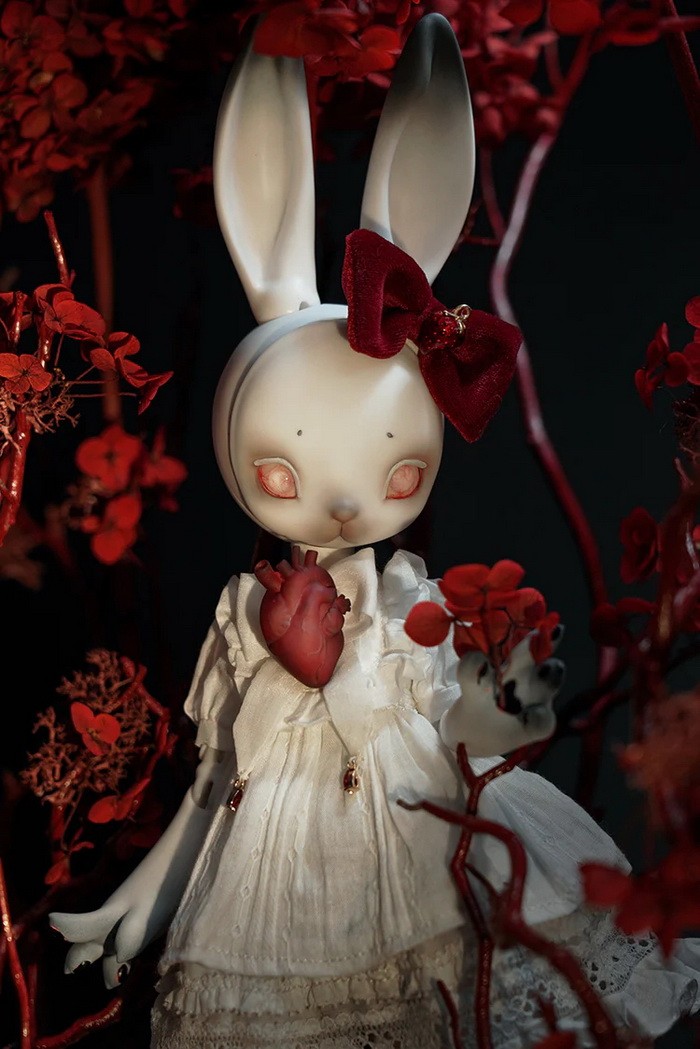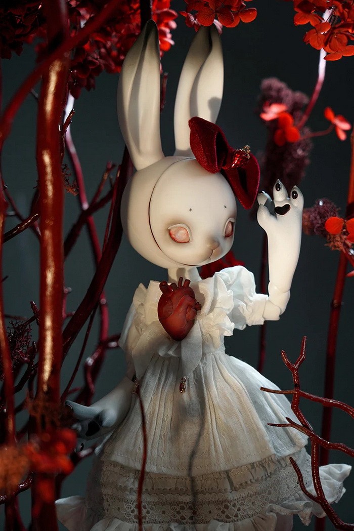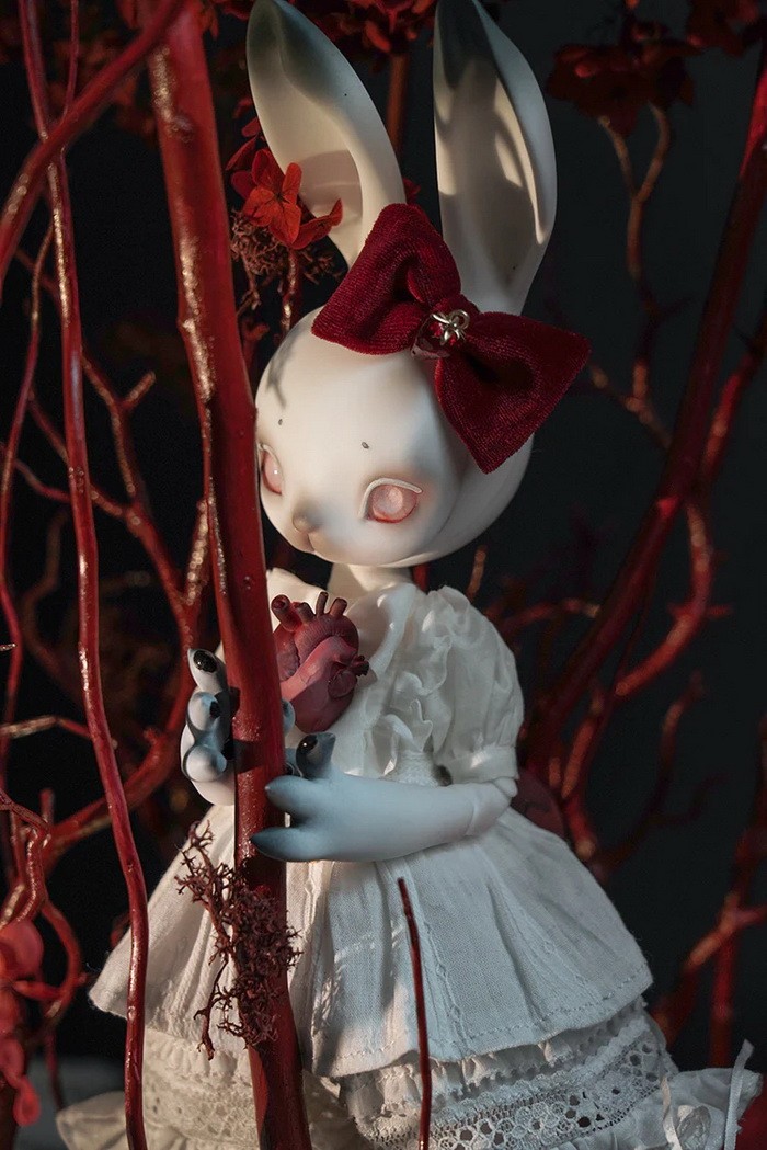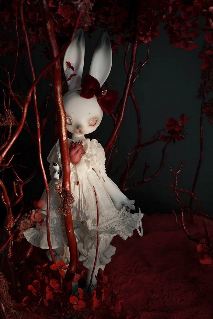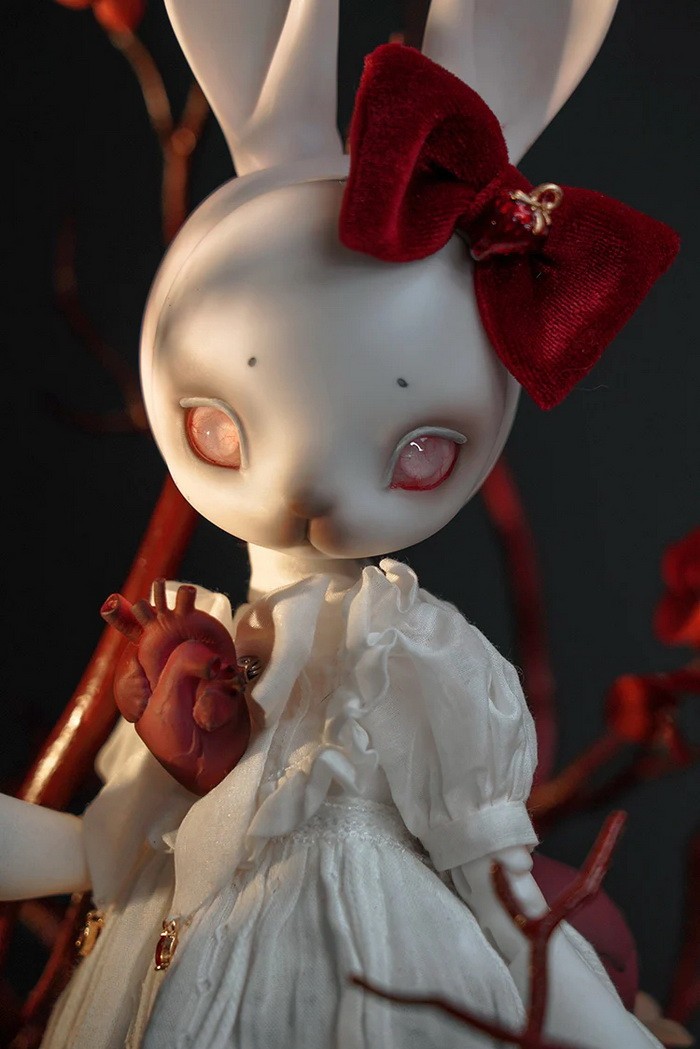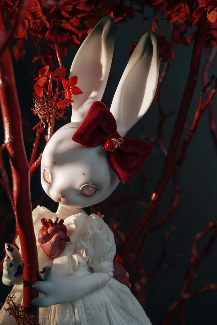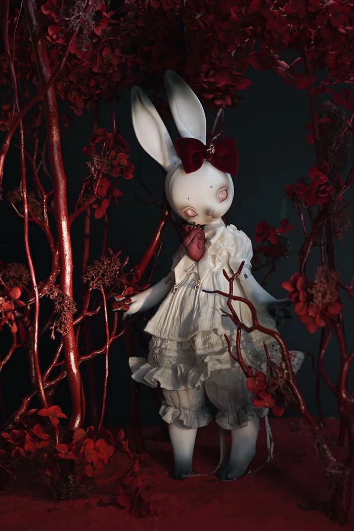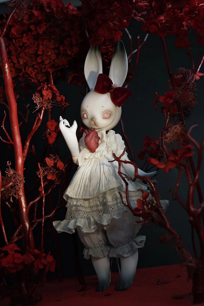 Coralreef Doll Reopen Doll Promotion (now - 2026.02.28): 5% off.====================================================================== White Rabbit, 35cm Coralreef limited Doll (discontinue after 2026.02.28). ![]() -Basic Doll (rabbit head with teeth + body) -Tail (man-eating flower) -Rabbit Mask -Heart Brooch -Birth Card -Packaging Fullset Price Includes: -Basic set -Eyes -Face up (makeup for ears & rabbit mask included) -Body Blush (makeup for tail & heart brooch included) -Clothes Notes: * The doll in promotion pictures is white skin. * 'Special Parts' means transparent open eyes mask (nude). * The price of 'human normal hands + human lower arms' is $25/pair (old blue + $5, mangosteen + $10), you can use this USD1 page to add them. * The price of 'human feet + human calves' is $25/pair ((old blue + $5, mangosteen + $10), you can use this USD1 page to add them. Measurements: Eyes : 14mm Height: 35cm (with ears) Head size: 18.5cm neck circumference: 4.4cm shoulder width: 5.5cm arm length: 10cm chest: 10.2cm waist: 9.3cm hips: 19.5cm leg length: 13cm thigh circumference: 11cm