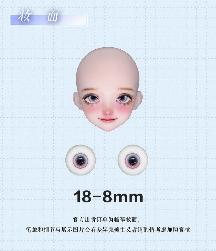 You Xi, 60cm Asleep Eidolon Girl. ![]() Basic Price Includes: -Basic Doll -Eyes (random) -Birth Card -Packaging Measurements: -Height: 60cm -Head: 21.5cm -Eyes: 18mm -Neck: 8.4cm -Shoulder Width: 12.3cm -Arm Length: 18.3cm -Chest: Large-27.9cm, Small-25.3cm -Waist: Large-19.2cm, Small-18.1cm -Hips: 29.6cm -Thighs: 18.8cm -Leg Length: 31cm -Foot Width: 2.5cm -Foot Length: 7.1cm